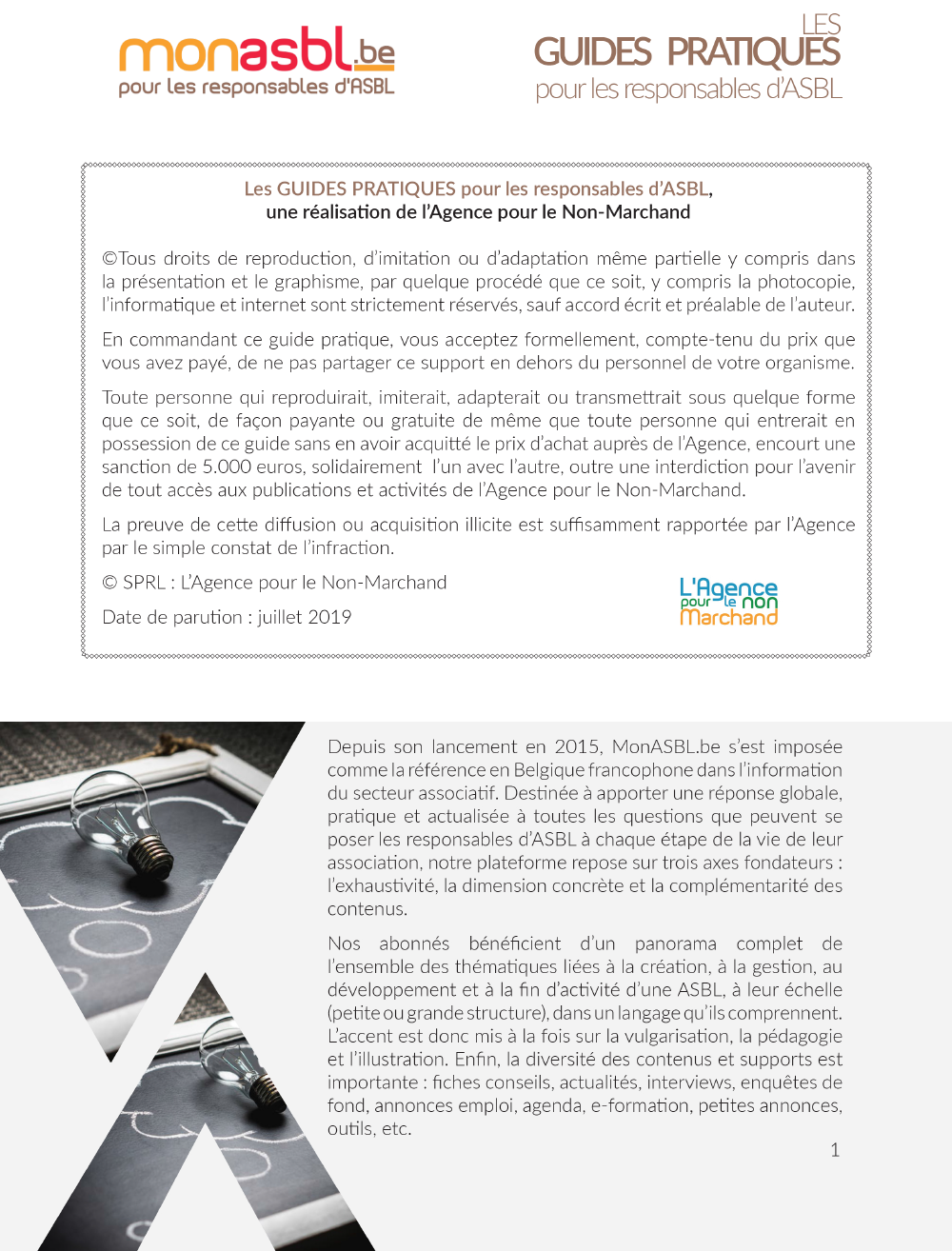 Un guide pratique est un document de plusieurs dizaines de pages qui a pour objectif d'informer de manière simple et pratico-pratique les ASBL sur une problématique bien spécifique. Vulgarisation, pédagogie et illustration sont les mots d'ordre de cet ouvrage.